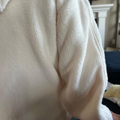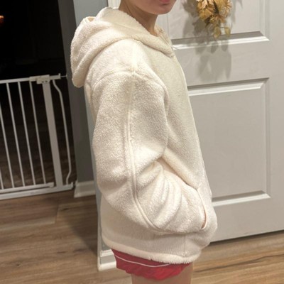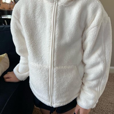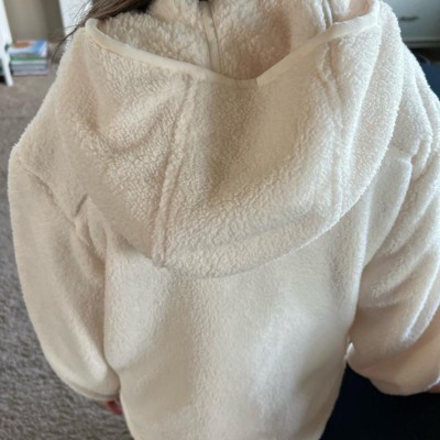 [This review was collected as part of a promotion.] My 12-year-old daughter is pictured her wearing a size extra large and this zip up fleece jacket fit her perfectly. We’re definitely more into neutrals this season and this white fits the bill. My daughter weighs about 100 pounds and overall this fit her perfectly she will definitely be able to wear this all season long both in the width and in the length it was perfect . The jacket is soft, cuddly, and warm. I received an incentive to write this review.
