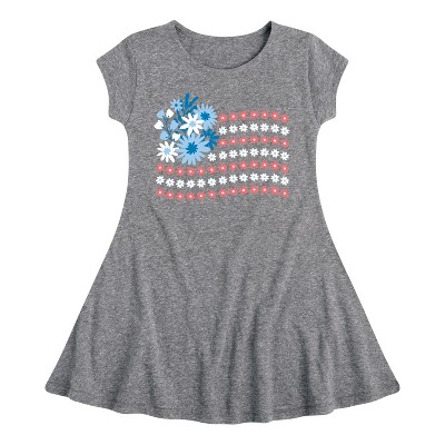 Instant Message 4th of July Fit & Flair Cap Sleeve Graphic Dress - Heather Navy - 2T