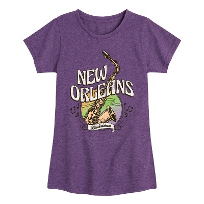 Girls' Instant Message Bagel Grid Fitted Short Sleeve Graphic T-Shirt - Heather Purple - Medium
