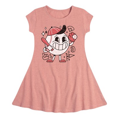 Girls' - Instant Message - Baseball Mascot Fit & Flair Cap Sleeve Graphic Dress