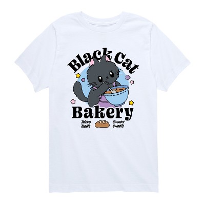 Girls' Instant Message Black Cat Bakery Short Sleeve Boxy Graphic T-Shirt - White - X-Large