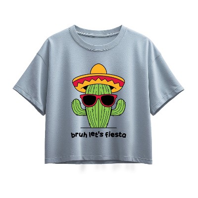 Girls' Instant Message Bruh Let's Fiesta Fitted Short Sleeve Graphic T-Shirt - Turquoise - Large