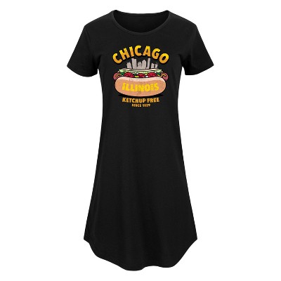 Instant Message Chicago Hot Dog Skyline Fit & Flair Cap Sleeve Graphic Dress - Heather Fuchsia - 2T