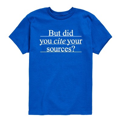 Instant Message - Cite Sources - Youth Girls Short Sleeve T-Shirt - Instant Message is an online specialty fashion retailer for everything from funny to inspiring printed apparel. We offer a range of garments from long sleeve and relaxed fit t-shirts, to lightweight french-terry long sleeve shirts, hoodies and graphic print pullovers. Our products feature fun and trendy graphics that are perfect for any occasion and also make great gifts.