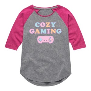 Instant Message - Cozy Gaming - Toddler & Youth Girls Raglan Graphic T-Shirt - Instant Message is an online specialty fashion retailer for everything from funny to inspiring printed apparel. We offer a range of garments from long sleeve and relaxed fit t-shirts, to lightweight french-terry long sleeve shirts, hoodies and graphic print pullovers. Our products feature fun and trendy graphics that are perfect for any occasion and also make great gifts.