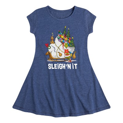Instant Message Dear Santa It Was Papas Idea Christmas Fit & Flair Cap Sleeve Graphic Dress - Heather Fuchsia - 2T