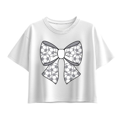 Girls' Instant Message Football Bow Short Sleeve Boxy Graphic T-Shirt - White - Large