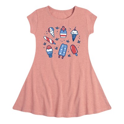 Girls' Instant Message Fourth Of July Desserts Graphic Sleeveless Aline Dress - Heather Navy - 2T