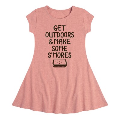Instant Message - Get Outdoors & Make S'mores - Toddler & Youth Girls A-line Dress - Instant Message is an online specialty fashion retailer for everything from funny to inspiring printed apparel. We offer a range of garments from long sleeve and relaxed fit t-shirts, to lightweight french-terry long sleeve shirts, hoodies and graphic print pullovers. Our products feature fun and trendy graphics that are perfect for any occasion and also make great gifts.