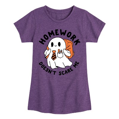 Instant Message - Ghosts Dont Do Homework - Toddler & Youth Girls Short Sleeve Graphic T-Shirt - Instant Message is an online specialty fashion retailer for everything from funny to inspiring printed apparel. We offer a range of garments from long sleeve and relaxed fit t-shirts, to lightweight french-terry long sleeve shirts, hoodies and graphic print pullovers. Our products feature fun and trendy graphics that are perfect for any occasion and also make great gifts.