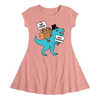 Instant Message Gobble Dinosaur Fit & Flair Cap Sleeve Graphic Dress - Heather Fuchsia - 2T