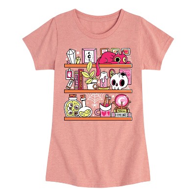 Girls' Instant Message Halloween Bows -Youth Girls Short Sleeve T-Shirt Fitted Short Sleeve Graphic T-Shirt - Desert Pink - Small