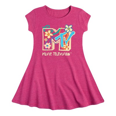Girls' - Instant Message - Hand Drawn Peace Sign Flowers Graphic Sleeveless Aline Dress