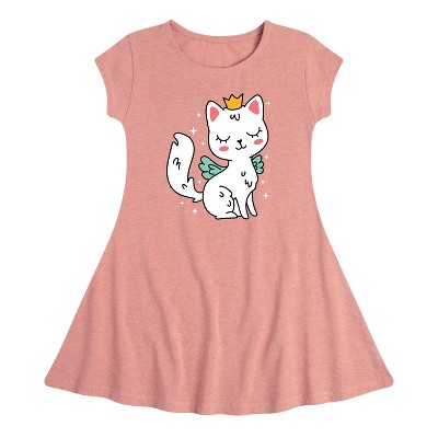 - Short sleeve youth dress with a fitted top portion and a flared flowy bottom for a comfortable fit.