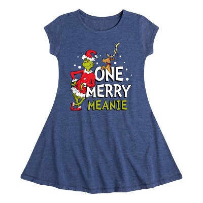 Girls' Instant Message Here To Sleigh Christmas Fit & Flair Cap Sleeve Graphic Dress - Heather Navy - Medium