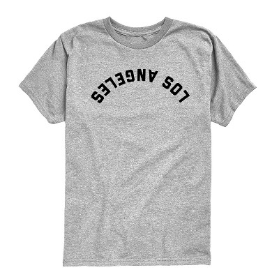 Girls' Instant Message Los Angeles Black Upside Down Fitted Short Sleeve Graphic T-Shirt - Heather Grey - Large