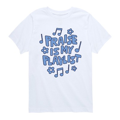 Girls' Instant Message Praise Is My Playlist Short Sleeve Boxy Graphic T-Shirt - White - Large