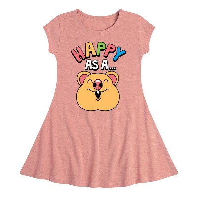 Instant Message Quokka Moods Fit & Flair Cap Sleeve Graphic Dress - Heather Fuchsia - 2T