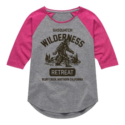 Girls' Instant Message Sasquatch Santa Shirt Tail Raglan Graphic T-shirt - Athletic Heather/Fuchsia - X-Large