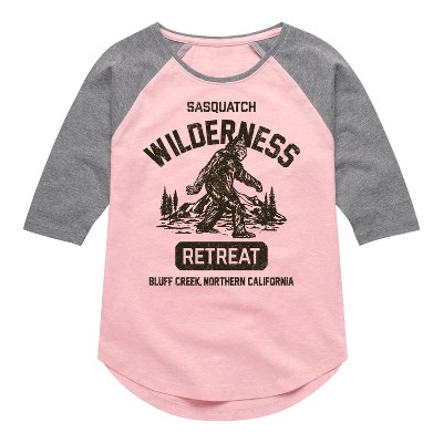 Instant Message - Sasquatch Wilderness Retreat - Youth Girls Shirt Tail Raglan T-Shirt - Instant Message is an online specialty fashion retailer for everything from funny to inspiring printed apparel. We offer a range of garments from long sleeve and relaxed fit t-shirts, to lightweight french-terry long sleeve shirts, hoodies and graphic print pullovers. Our products feature fun and trendy graphics that are perfect for any occasion and also make great gifts.