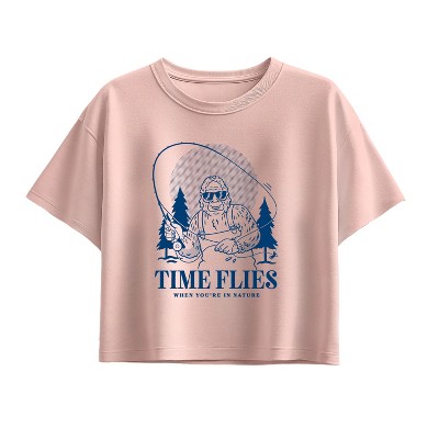 Girls' Instant Message Sasquatch Wilderness Retreat Short Sleeve Boxy Graphic T-Shirt - Light Pink - Medium