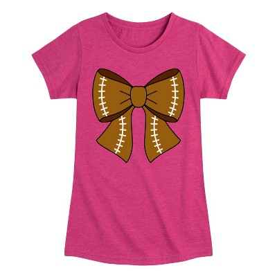Girls' Instant Message Softball Bow Fitted Short Sleeve Graphic T-Shirt - Heather Fuchsia - Small