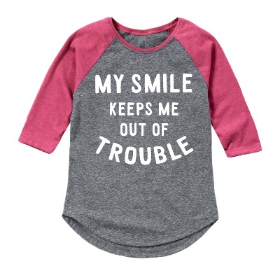 Girls' Instant Message St. Patrick's Day Lucky to Not Be In Trouble Shirt Tail Raglan Graphic T-shirt - Athletic Heather/Fuchsia - Large