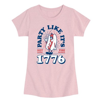 Girls' Instant Message Ten Cent Hotdog Night Fitted Short Sleeve Graphic T-Shirt - Heather Fuchsia - X-Large