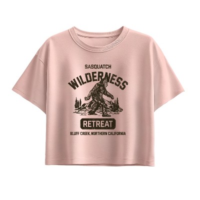 Girls' Instant Message Time Flies Sasquatch Short Sleeve Boxy Graphic T-Shirt - Light Pink - Large