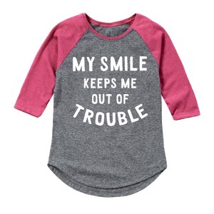 Girls' - Instant Message - My Smile keeps Me Out Of Trouble Shirt Tail Raglan Graphic T-shirt