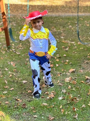 Have your child stand like a tall tree with feet together. Measure a level line around the fullest part of the hips & seat.