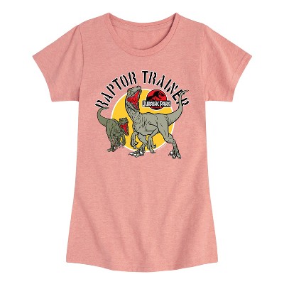 Girls' Jurassic Park Raptor Trainer Fitted Short Sleeve Graphic T-Shirt - Heather Pink - Large