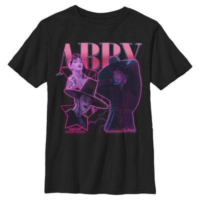 - Unleash your inner idol with this eye-catching girls' t-shirt perfect for concerts, hangouts, or everyday slaying! Featuring a colorful collage of Abby from K-pop Demon Hunters printed across the front.