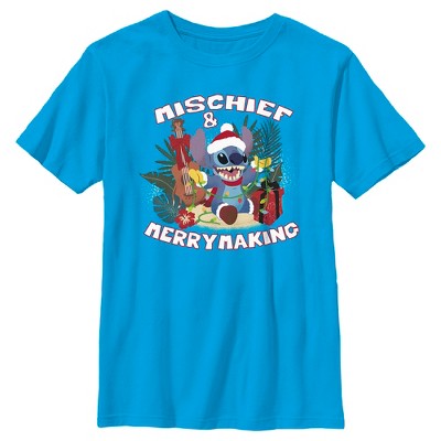 Lilo & Stitch - Holiday Mischief - Girls Fitted Short Sleeve Tee - Celebrate the ohana with Lilo & Stitch graphic apparel, blending new visuals with classic heartwarming moments featuring Lilo, Stitch, and the bonds of family.