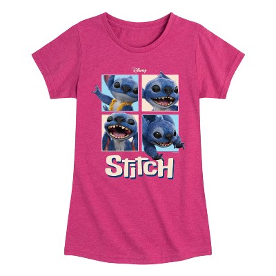 Girls' Lilo & Stitch Stitch Surfing Fitted Short Sleeve Graphic T-Shirt - Heather Fuchsia - Large