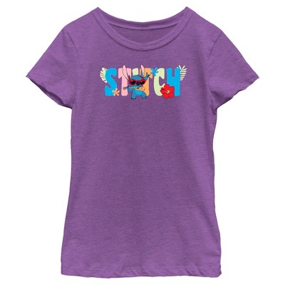 Girls Lilo & Stitch Floral Ukulele Dance T Shirt - Purple Berry - X Small