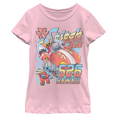 • Enjoy comfort and fashion at the same time with this unique girls' graphic tee design from Lilo & Stitch.