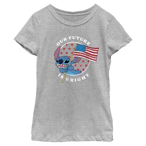 • Light up your look with this festive girls' t-shirt perfect for Fourth of July celebrations and everyday style! Featuring Stitch holding the American flag and the phrase "Our Future Is Bright" printed across the front.