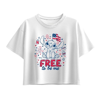 Girls' Lilo & Stitch USA Stitch Short Sleeve Boxy Graphic T-Shirt - Black - Small
