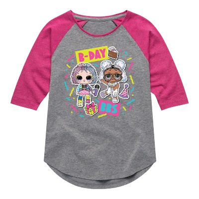 LOL Surprise! Dolls - B-Day B.B. Besties Celebrate Birthdays - Toddler & Youth Girls Raglan Graphic T-Shirt - Dive into the world of glitter, glam, and surprises with our exclusive collection of apparel inspired by the beloved toy phenomenon, LOL Surprise! Dolls. Crafted with quality materials for comfort and durability, our Graphic Garments are perfect for expressing your unique style and spreading joy wherever you go. Whether you're uncovering the latest fashion trends or embracing the magic of surprise, our LOL Surprise! Dolls Graphic Garments are sure to add a touch of sparkle to your wardrobe. Get ready to unleash your inner diva and make a statement with our LOL Surprise!-inspired fashion today!