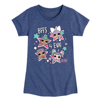LOL Surprise! Dolls - Bff Vibes with Queen Bee, Deva, & Neon QT - Toddler & Youth Girls Short Sleeve Graphic T-Shirt - Dive into the world of glitter, glam, and surprises with our exclusive collection of apparel inspired by the beloved toy phenomenon, LOL Surprise! Dolls. Crafted with quality materials for comfort and durability, our Graphic Garments are perfect for expressing your unique style and spreading joy wherever you go. Whether you're uncovering the latest fashion trends or embracing the magic of surprise, our LOL Surprise! Dolls Graphic Garments are sure to add a touch of sparkle to your wardrobe. Get ready to unleash your inner diva and make a statement with our LOL Surprise!-inspired fashion today!