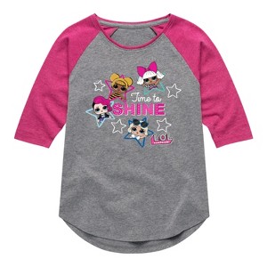 LOL Surprise! Dolls - Time to Shine - Shinning Stars - Toddler & Youth Girls Raglan Graphic T-Shirt - Dive into the world of glitter, glam, and surprises with our exclusive collection of apparel inspired by the beloved toy phenomenon, LOL Surprise! Dolls. Crafted with quality materials for comfort and durability, our Graphic Garments are perfect for expressing your unique style and spreading joy wherever you go. Whether you're uncovering the latest fashion trends or embracing the magic of surprise, our LOL Surprise! Dolls Graphic Garments are sure to add a touch of sparkle to your wardrobe. Get ready to unleash your inner diva and make a statement with our LOL Surprise!-inspired fashion today!