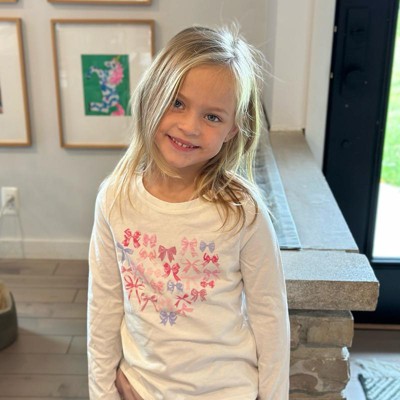Girls' Long Sleeve 'Bow Heart' Graphic T-Shirt - Cat & Jack™ Cream - 2 of 4Girls' Long Sleeve 'Bow Heart' Graphic T-Shirt - Cat & Jack™ Cream - 3 of 4Girls' Long Sleeve 'Bow Heart' Graphic T-Shirt - Cat & Jack™ Cream - 4 of 4
