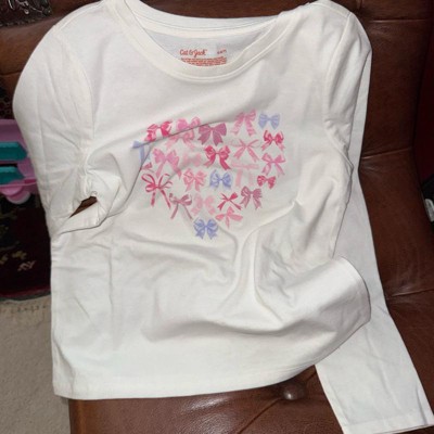 Girls' Long Sleeve 'Bow Heart' Graphic T-Shirt - Cat & Jack™ Cream