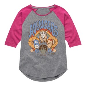 Girls' - Marvel - Avengers Floral Shirt Tail Raglan Graphic T-shirt - 1 of 3