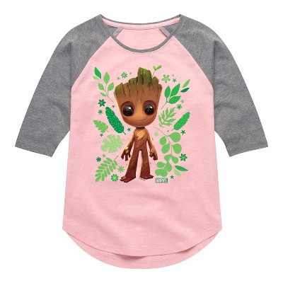 Girls' - Marvel - Guardians of the Galaxy Baby Groot Leaf Shirt Tail Raglan Graphic T-shirt