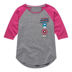 Girls' - Marvel - Captain America Logo Stack Shirt Tail Raglan Graphic T-shirt - 1 of 3