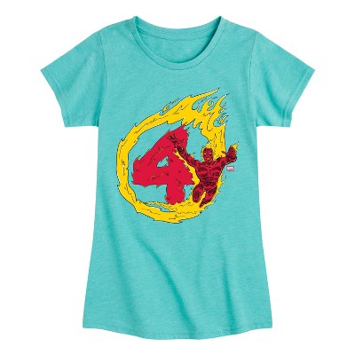 Girls' Fantastic Four Fantastic Four Human Torch 4 Short Sleeve Boxy Graphic T-Shirt - Chambray Blue - Large