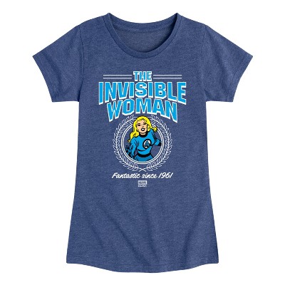 Fantastic Four - Invisible Woman Collegiate - Youth Girls Boxy T-Shirt - Celebrate the incredible powers and iconic adventures of Mr. Fantastic, the Invisible Woman, the Human Torch, and the Thing with bold, eye-catching designs that highlight their unique abilities and their enduring bond as a team. Featuring dynamic artwork inspired by classic comic book covers, memorable moments, and their iconic symbols, each piece combines comfort and style for fans of all ages. From graphic tees and hoodies to accessories, this collection lets you represent the heroes who started it all—whether you’re a fan of the Fantastic Four’s legendary battles or their powerful legacy. Embrace the extraordinary with apparel that brings the spirit of the Fantastic Four to life!