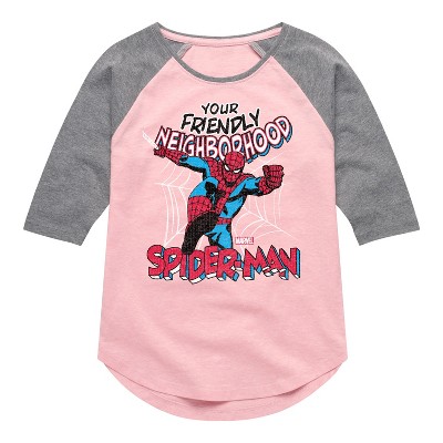 Girls' - Marvel - Friendly Neighborhood Spider-Man Shirt Tail Raglan Graphic T-shirt